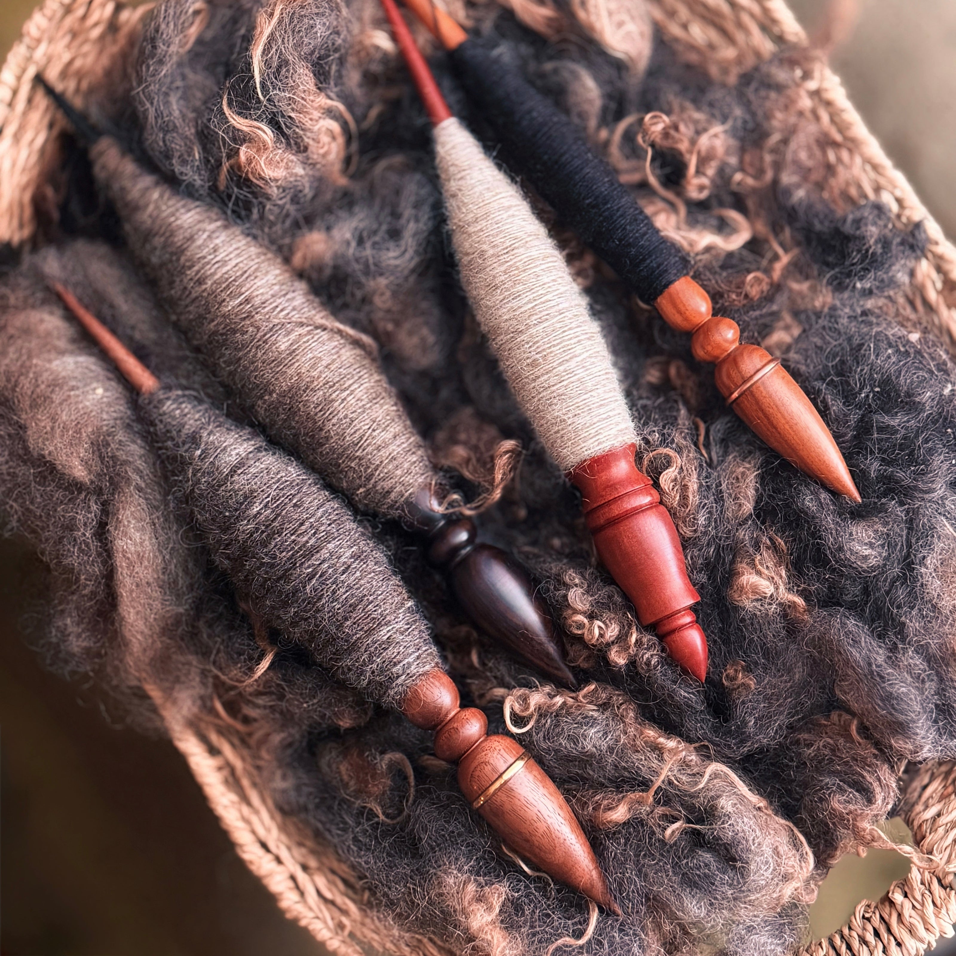 Handcrafted Heirloom Wooden Spindles, & Hand Processed Fiber