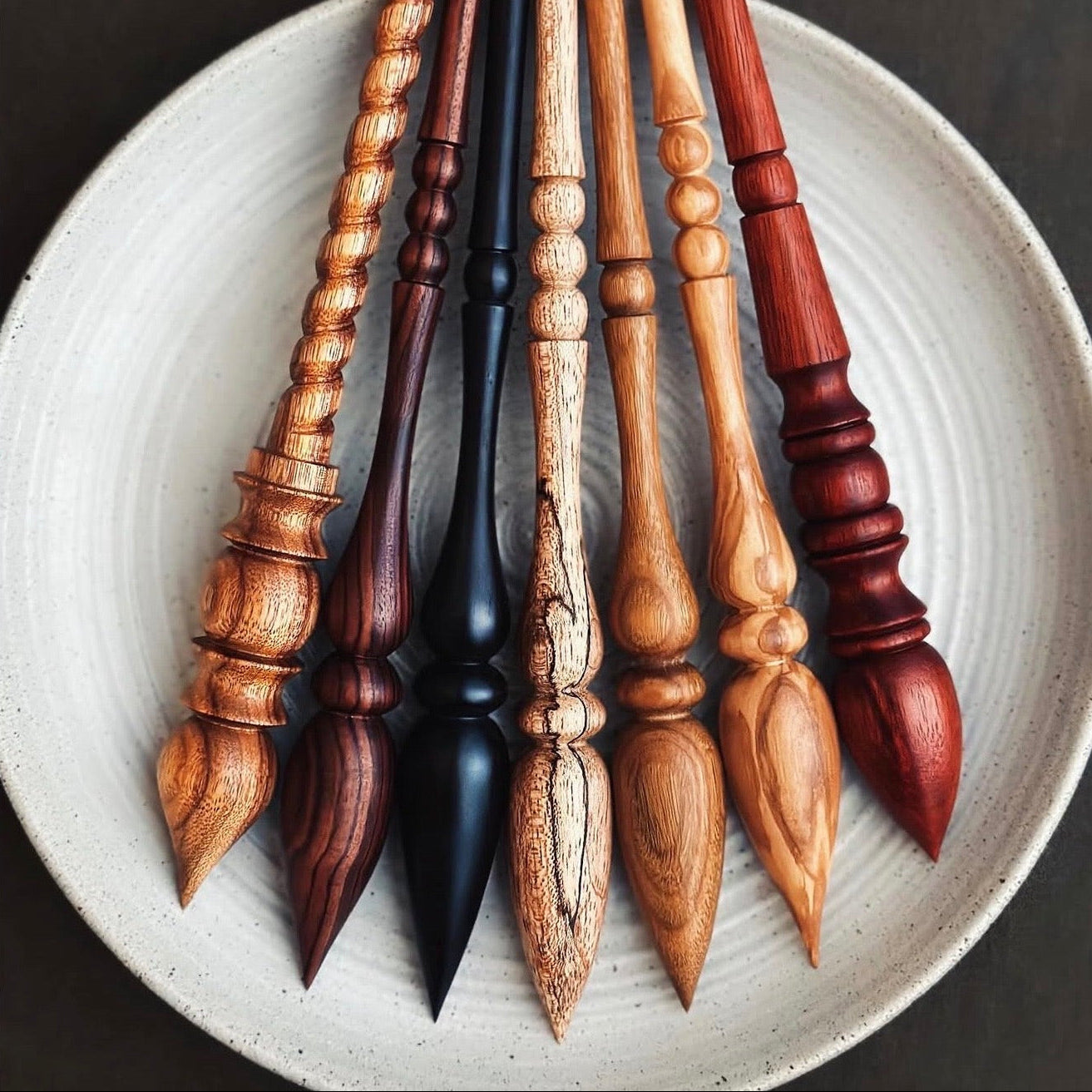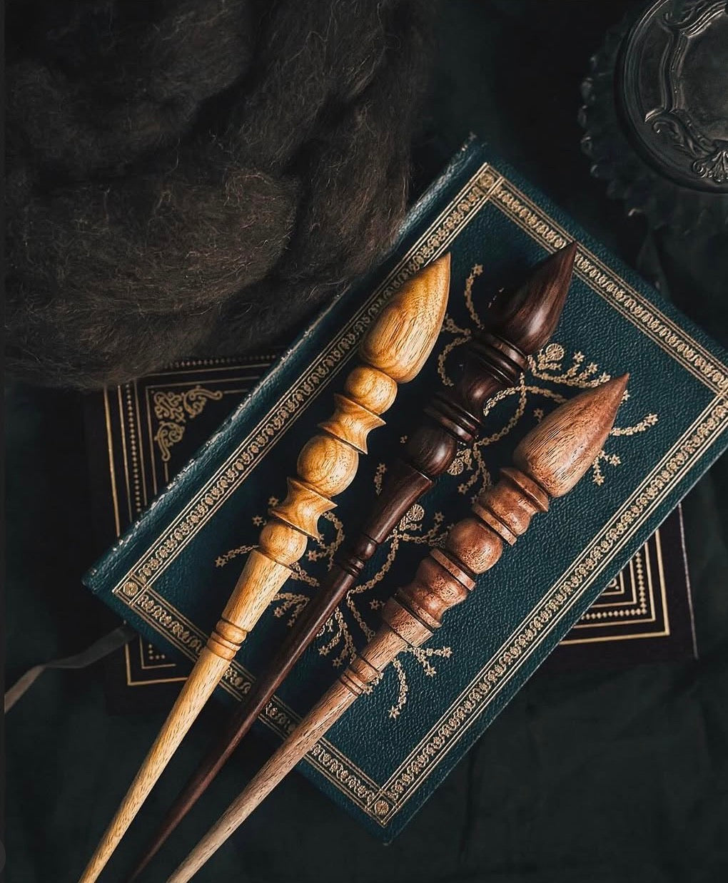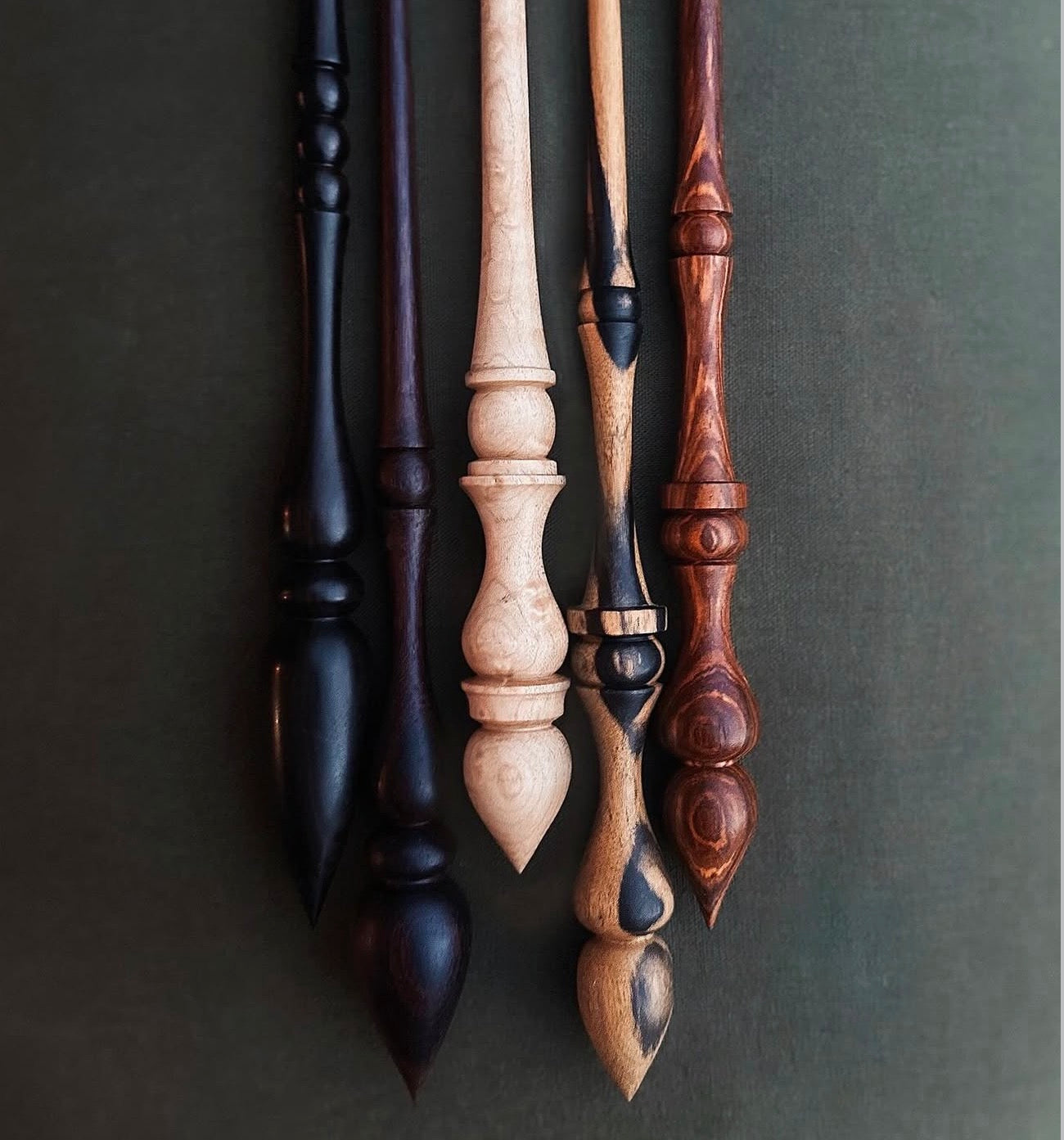 Willow is a 3rd generation woodworker & fiber artist. She has spent many years collecting, studying, & spinning different spindle styles throughout history & from around the world. She owns ancient whorls from different archeological dig sites, antique spindles of almost every style created, & more modern adaptations of spindles that are commonly used today. Out of every style of spindle that she has used, from the very 1st historical accounts of spinning, Russian supported spindles are her most favorite. The meditative qualities, the efficiency, the precise control of the yarn characteristics, ability to be used with all breeds & types of fiber, & the overall feel of the spindle itself, have endeared Russian spindles as her most used & created spindles. She shares her passion for these special spindles with her own, unique, artistic style, as well as enhanced & refined functionality.